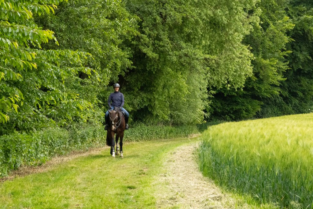 - Direkt am Hof gibt es einige schöne Wege durch Felder und Wälder – ideal für ein kleines Warm-Up oder das Kennenlernen kleiner Ausritte